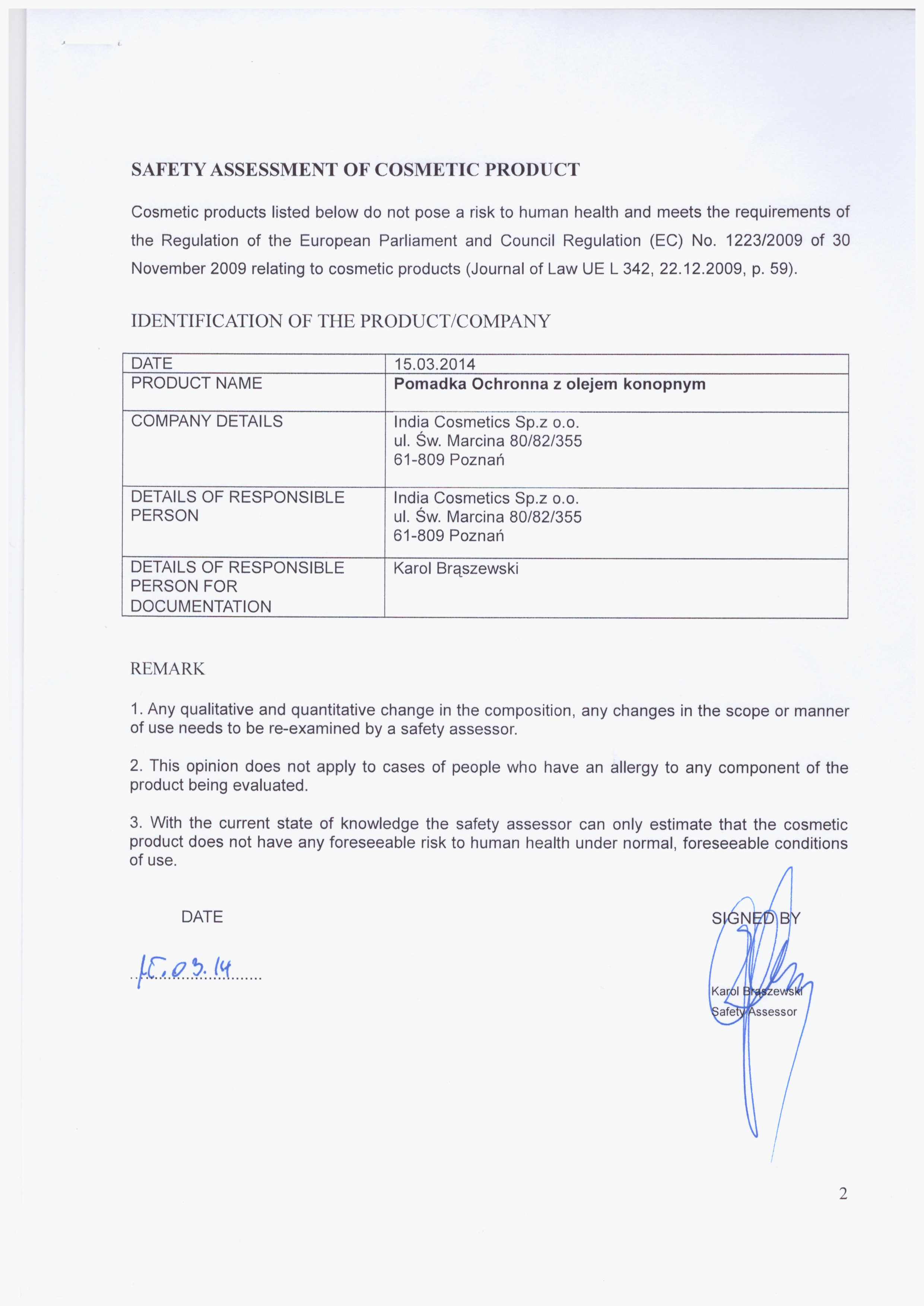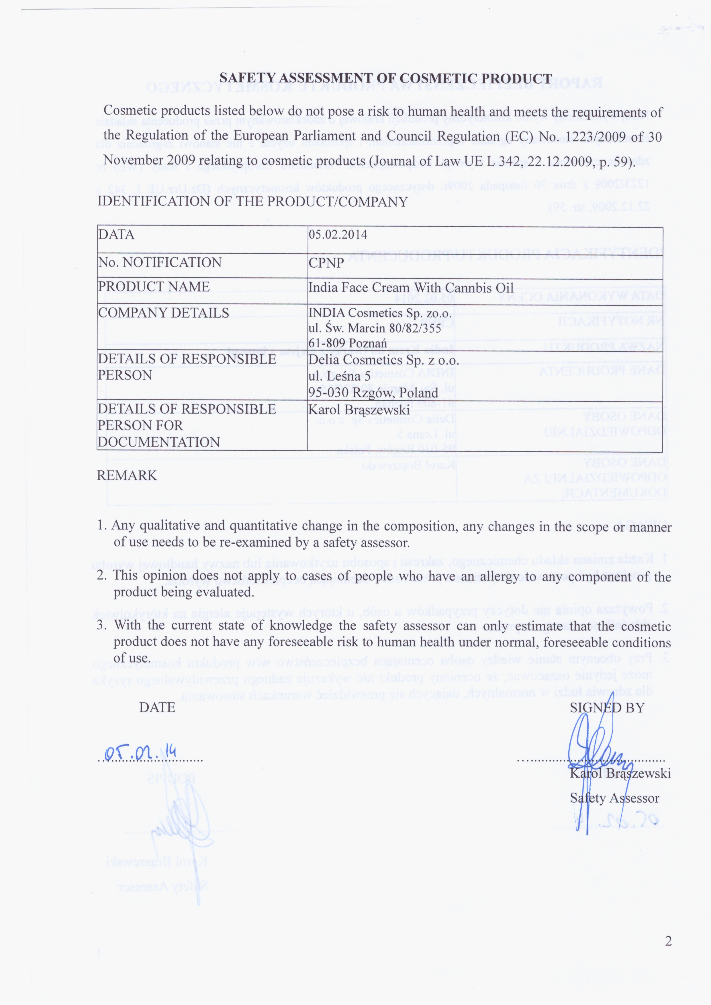 Krem do twarzy - raport bezpieczeństwa - polski / english