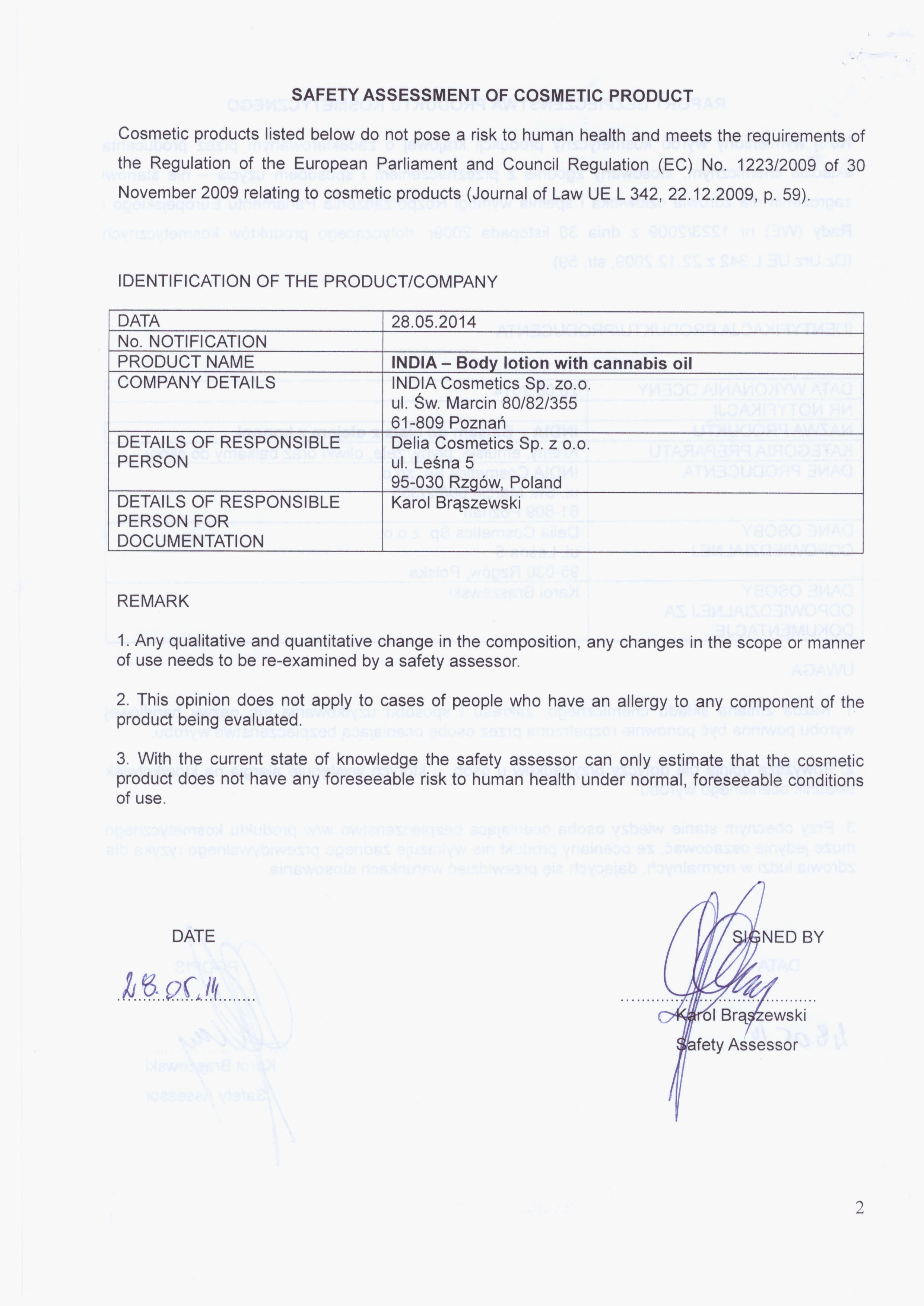 Balsam do ciała - raport bezpieczeństwa - polski / english