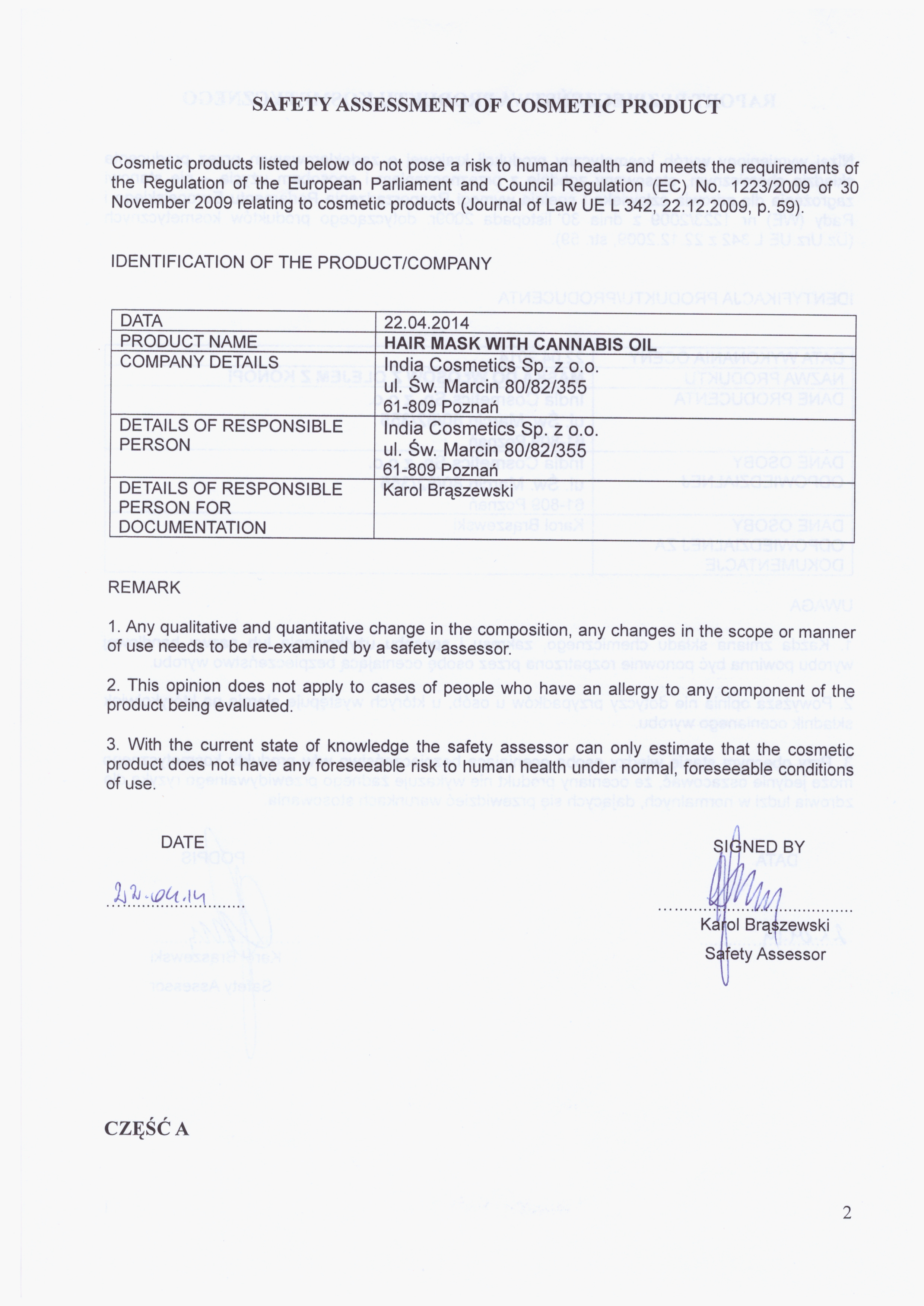 Maska do włosów - raport bezpieczeństwa - polski / english
