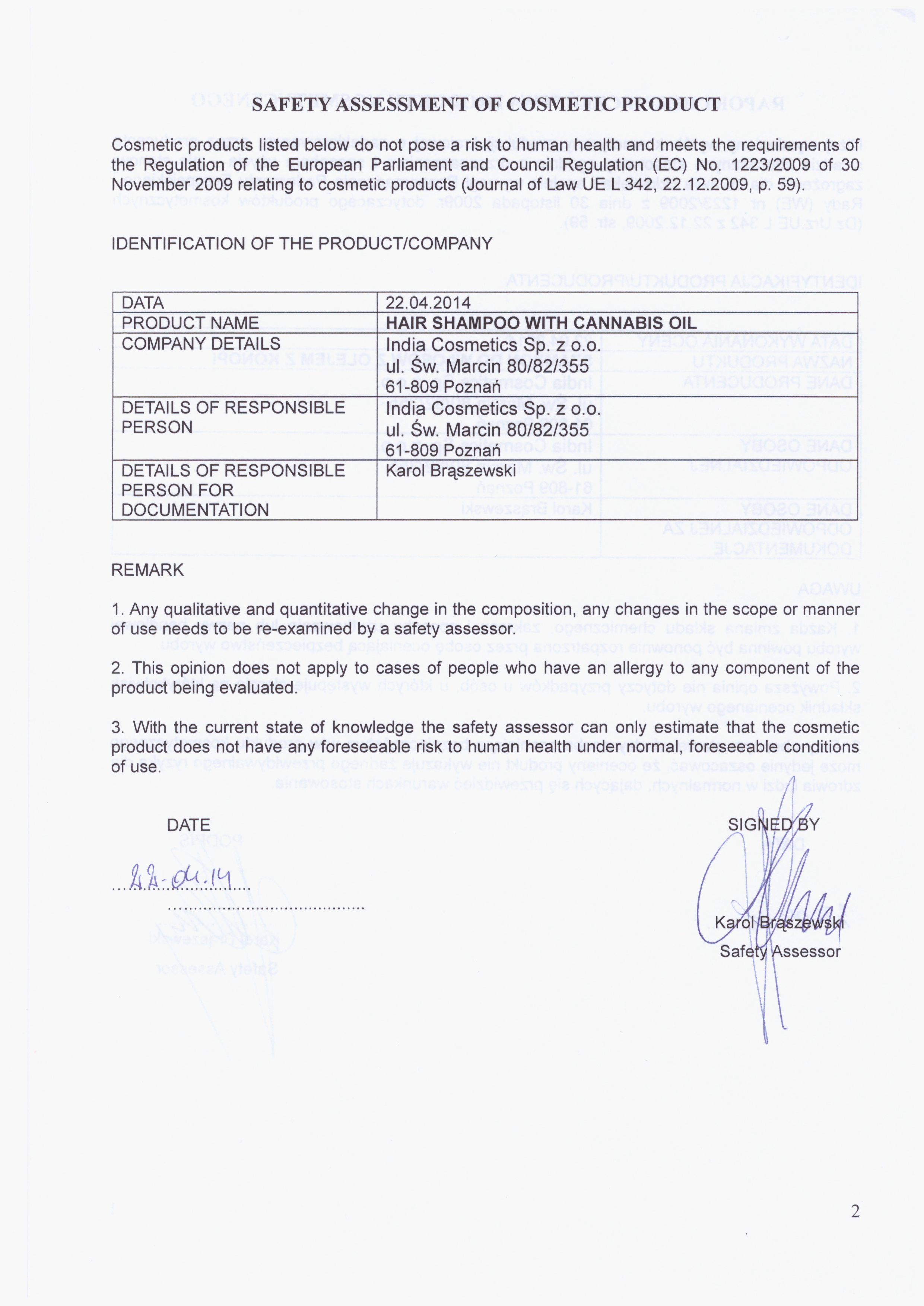 Szampon do włosów - raport bezpieczeństwa - polski / english